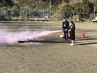 今日は6校時に避難訓練(火災対応)がありました。教頭先生による避難通告後、1分30秒で運動場に集合ができました。私語も無くとてもスムーズでした。その後、消火訓練と講師の先生のお話がありました。「教室の窓を閉めてきたことはとても良かったこと」「台所で消火器を火元に近づけすぎると鍋がひっくり返ることがあること」「消火器の置き場は台所ではなく、玄関が望ましいこと」「火災報知器の確認を家でして欲しいこと」などのお話をされました。