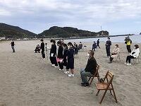 2年生は、本日の午後から大堂津浜で立志の集いを実施しました。会場までは徒歩で行き、帰りはゴミ拾いをしながら帰りました。一人一人四字熟語を作り、自分の思いを海に向かって大きな声で発表しました。みんな素晴らしい発表でメディアの方々も保護者の皆さんも感心していました。お疲れ様でした。