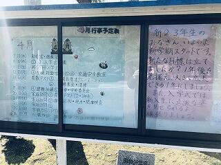 3年生が以前から立ててあった標柱に掲示板を作ってくれました。明日に卒業式を控え忙しい中でしたが、先週の金曜日が雨だったために本日の設置となりました。3年生、本当に最後までありがとう!