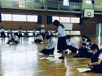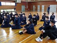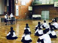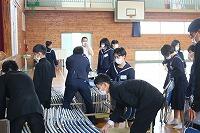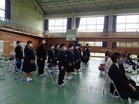 今日、4校時に卒業式で流す全校合唱の録画を行いました。当日は感染症対策のため合唱はできないので、体育館で前後の距離を十分に取って歌いました。その後、本校での授業が今日で最後となった音楽の上米良先生のお別れ会をしました。4年間も細田中学校で音楽の指導をしてくださった先生にみな感謝の気持ちで一杯でした。本当にありがとうございました。