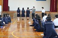 今日は5校時に生徒指導オリエンテーションがあり、学校のきまりについて全校生徒で確認をしました。特に服装容儀については望ましい姿とはどういうものなのか、きちんとできている生徒を例に説明をしました。また、3年生は1年生の服装を見て、いい箇所とそうでない箇所を教えていました。みんながよりよい学校生活を送るため、きまりを理解した上でしっかりと守ってほしいと思います。