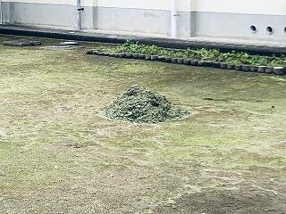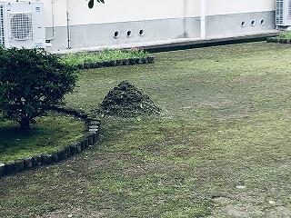 昨日、生徒が部活動をしている間、落ち葉を集めるブロアの音がすると思ったら、教頭先生が中庭の伐採後の草を集めていました。降雨のため環境整備員さんが片づけられずそのままになっていたものを、雨の間隙を縫って集めてくれていました。有り難いことです。