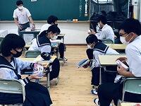 今週の朝自習は読書です。1年生は10分間の読書後、感想を前に出て発表し、2年生は読書後、近隣の生徒同士で発表し合っていました。3年生は図書司書の先生から、本の紹介をして頂きました。読書に親しみながら、アウトプットの力も付けて欲しいと思います。