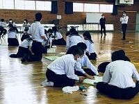 学習・文化委員会の提案で今月に行われる中総体に向けて、全校生徒と職員で応援メッセージを書きました。それぞれ男女ソフトテニス部に向けて時間を見つけては一人一人書いていました。中総体激励式の日に贈呈するようです。