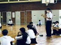 本日、日南更正保護女性会の川口氏と谷口氏が来校され、3年生に手作りの押し花しおりをプレゼントしてくださいました。また、更正保護女性会の活動についてもお話をされ、生徒たちは真剣に聞いていました。立派な贈り物をありがとうございました。