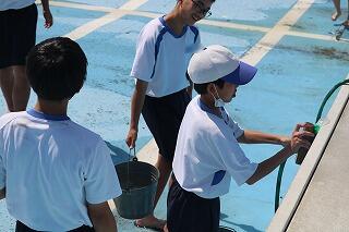 いよいよ来月から水泳の授業が始まります。昨年同様、コロナウィルス対策を考えながらの実施となります。それに際して、先日全校生徒でプール掃除を実施しました。職員と協力しながら1年間の汚れを一生懸命に落としていました。おかげでとてもきれいなプールになりました。