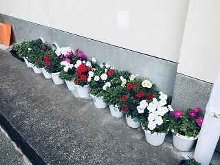 それから、寒風や大雨にさらされ、鳥の被害にもあったたくさんのペチュニア。心配しましたが、環境整備員の皆さんのおかげでしっかりと育っています。厳しい環境とタイミングの良い手入れ。どちらも大切です。教育とつくづく似ています。