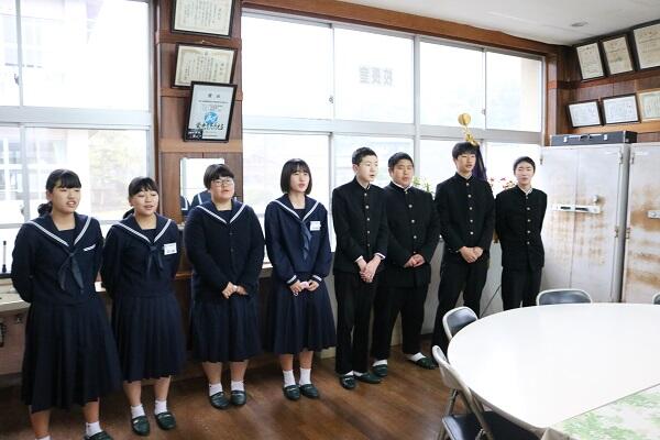 生徒会長を中心に役員のメンバーが質問に答えていました。地域版に出ると思いますが、どんな風に掲載されるか楽しみです。