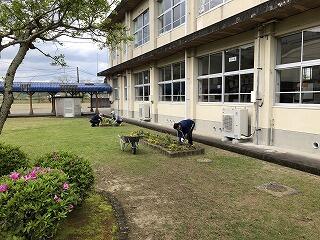 体育の授業で、それぞれの学年でプール掃除をやっていましたが、もうすぐ終わりそうです。なかなか水はけが悪く、生徒たちは苦労していますが一所懸命掃除をする姿は微笑ましいです。