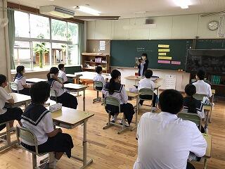 今日は朝自習の時間、3年生を対象に、図書司書の多田先生がブックトークをしてくださいました。心臓の模型を持ってこられ、生徒の興味を引き、その後は体に関する本の紹介でした。紹介される5冊の本について、生徒たちは楽しそうに聞いていました。ありがとうございました。