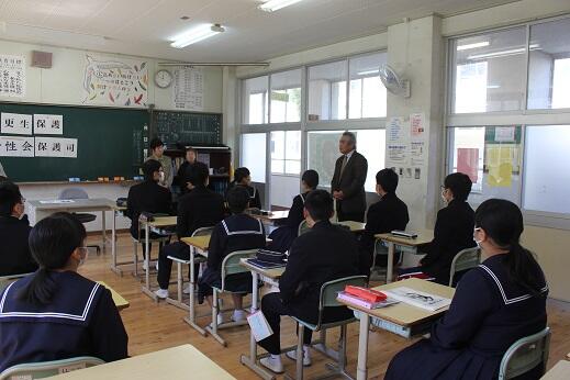 山角さんや山平先生を迎え、3年生と保護司の皆さんとの交流会をしました。