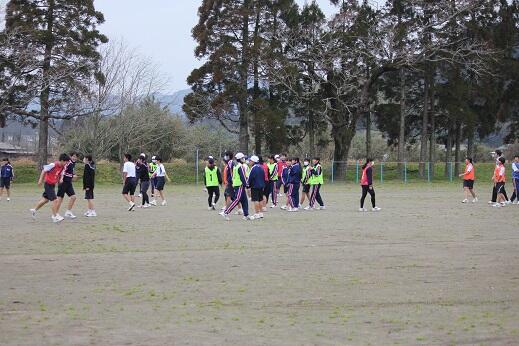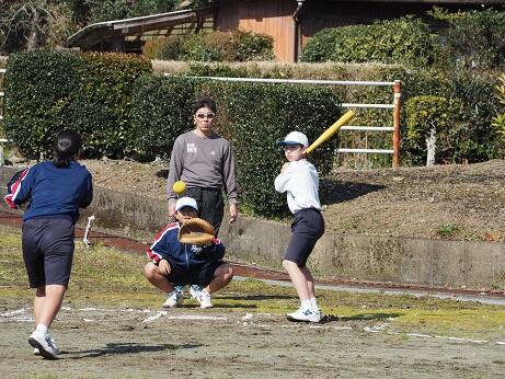 全校を4チームに分け、男女混合のお別れソフトボール大会です。