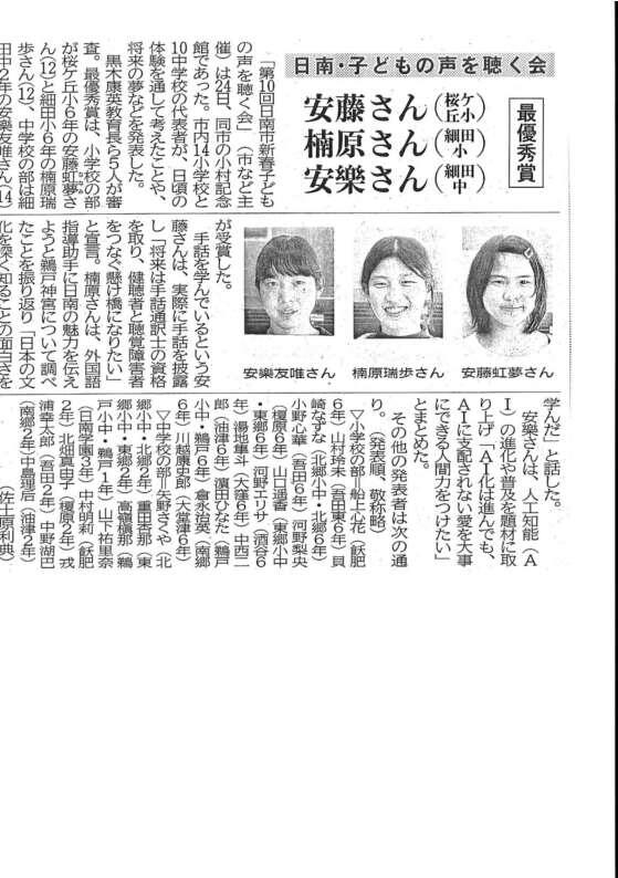 安樂さんが中学校の部で受賞しました。