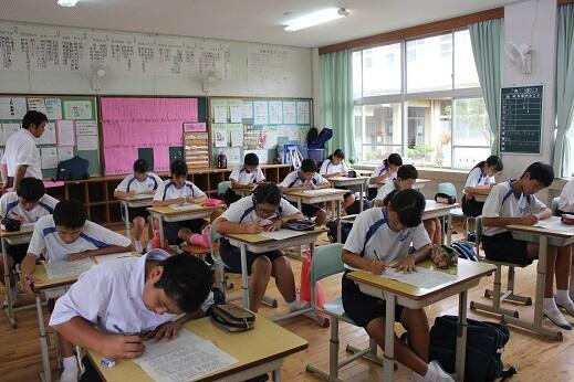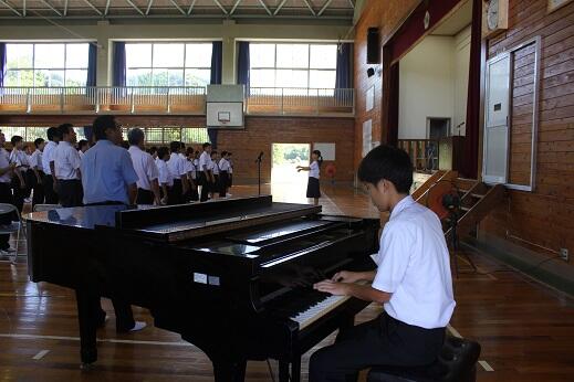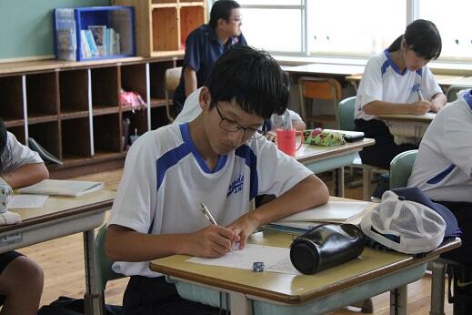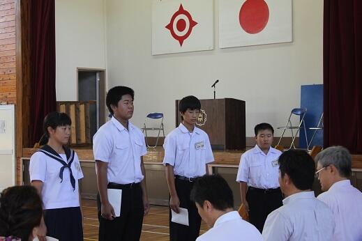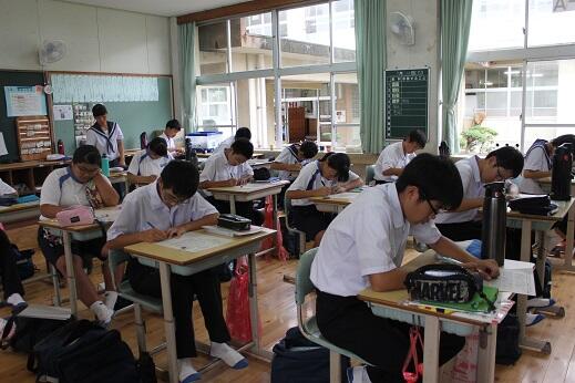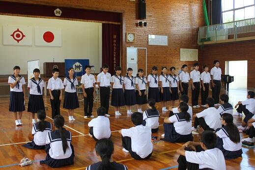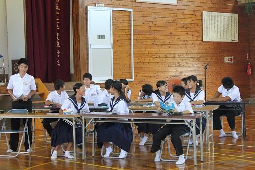 生徒会の学習文化委員が授業の受け方など劇を交えて啓発しました。