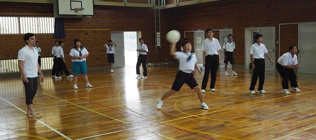 ムーチンさんは1年で、ケリーさんは2年で給食を食べました。昼は全校レクレーションで楽しみました。