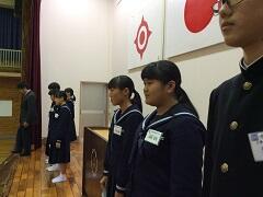 11月24日(金)に生徒会役員の解任式・認証式を実施しました。まず旧生徒会役員7名に教頭先生から感謝状の贈呈があり、その後にそれぞれがこの1年を振り返り挨拶をしました。引き続き、申請と会役員の認証式が行われました。新生徒会役員7名にそれぞれ任命書が授与されました。その後、新生徒会長の松岡花風さんがこれからの抱負として挨拶をしました。旧生徒会役員のみなさん、1年間ご苦労様でした。新生徒会役員のみなさん、あなたたちの活躍を期待していますよ。