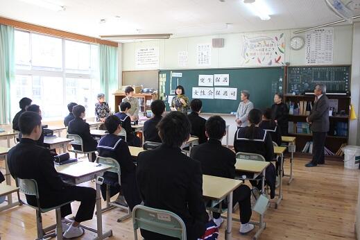 山角さんや山平先生を迎え、3年生と保護司の皆さんとの交流会をしました。