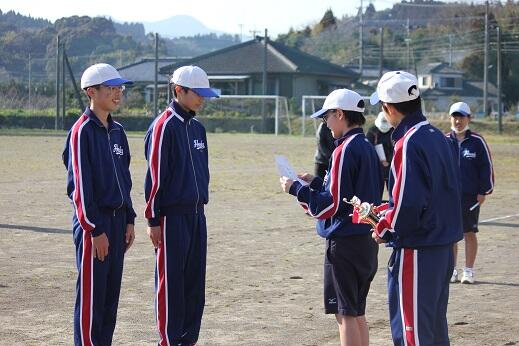 全校を4チームに分け、男女混合のお別れソフトボール大会です。