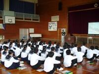 5月20日(金)の5・6校時に【地震・津波を想定した避難訓練】を実施しました。地震発生の緊急地震速報が流れると生徒は一斉に机の下に避難しました。揺れがおさまった後に、生徒の判断で学校前の高台に避難します。職員が防災袋や救命かばんを持参し一斉に高台に避難しました。その後、体育館に移動して、日南市役所危機管理課の方から、地震や津波の予想、崖崩れの恐れ、家庭内での地震防災対策等について講話していただきました。常日頃からの訓練と、万が一の時のために家族の中でも話し合っておくと良いと思います。