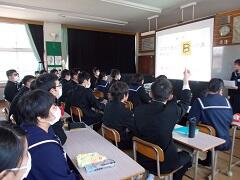 食に関する集会 投稿日時 : 2018/02/02 学校管理者 1月19日(金)に給食感謝週間にあわせて「食に関する集会」を実施しました。生徒会の保体委員会の担当班が企画・準備をして実施してくれました。当日の内容は「食に関するクイズ」「給食ができるまでの映像」「私が考える給食メニュー」の優秀作品の発表を行いました。細田地区栄養教諭の河野通子先生との打ち合わせやアドバイスをいただきながら準備を進めてきました。素晴らしい集会になりました。 Tweet
