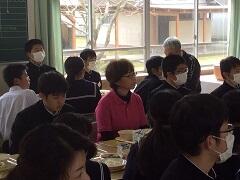 地産地消交流給食 投稿日時 : 2018/02/23 学校管理者 2月22日(木)の給食時間に地産地消交流給食を実施しました。今日の給食のメニューであるマグロの生産者である大堂津漁港や漁協女性部、また市役所の水産林政課、市教委なども来られ、賑やかな給食になりました。生産者からはマグロの種類やマグロの捕り方などを教えていただきました。生産者や市の関係者、栄養教諭の河野通子先生との交流給食は楽しい、有意義な時間になったと思います。 Tweet