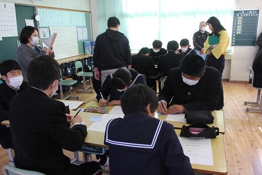 2名の表彰です。(善行生徒、子どもの声での最優秀賞)