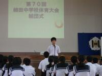 体育大会結団式 投稿日時 : 2016/07/19 学校管理者 7月12日(火)に第70回体育大会の結団式が行われました。まず今大会のスローガンが発表された後に、団色の決定がありました。赤団、白団が決定した後に、それぞれの団長に団旗が渡されて、いよいよ体育大会に向けての活動が開始されます。さっそく各団に分かれて練習をし、ミニエール交換を行いました。みんなのやる気をみていると、今年の体育大会の大成功を確信しました。 Tweet