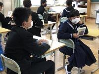 読書に親しむ・・・ 投稿日時 : 2021/01/19 学校管理者 今週の朝自習は読書です。1年生は10分間の読書後、感想を前に出て発表し、2年生は読書後、近隣の生徒同士で発表し合っていました。3年生は図書司書の先生から、本の紹介をして頂きました。読書に親しみながら、アウトプットの力も付けて欲しいと思います。 Tweet