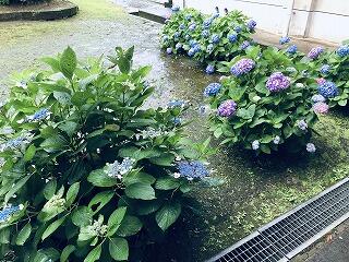 それから・・・雨の中、ガクアジサイとホンアジサイが元気に咲いています。