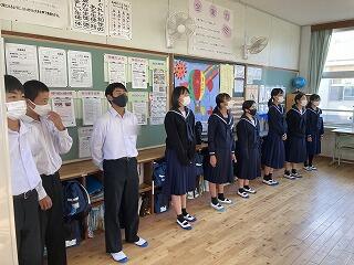 今日は参観日でした。内容は全学年による合奏・合唱、1年・2年それぞれの総合的な学習の時間の発表(1年は日南市クイズ・2年生はSDGsに関するもの)でした。短い時間の中でやれる準備を精一杯行い、素晴らしい発表を見せてくれました。今年度は近隣の小学校3校の5・6年生や日頃お世話になっている地域の方々を招待しました。どの方々からも生徒の姿を褒めていただきました。ありがとうございました。