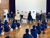 先週の金曜日は、3年生送別行事と校内球技大会がありました。送別行事では、1・2年生は3年生に向けて、3年生は下級生に向けてのメッセージを歌や劇、ダンスなどで表現しました。また、その後の球技大会では、バレーボールを行い優勝チームは教員チームと試合をしました。生徒チームは先生チームにこてんぱんにやっつけられました。