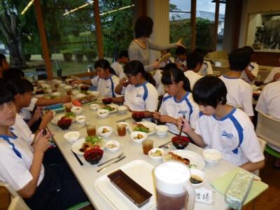 6月1日(木)の午後に津波・地震対応の避難訓練を実施しました。地震が来て、津波の危険が予想されるという想定で、学校の前の高台に避難しました。その後で、体育館に移動し、日南土木事務所の方に来ていただき、土砂災害やハザードマップの活用等について講話をしていただきました。自然災害がいつ来ても大丈夫なように、日頃の備えと対応する力を身に付けて欲しいと思います。