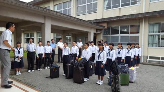 6月20日(火)、6時25分、やや曇り空のもと、2年生18名全員が元気よく修学旅行に出発しました。細田中を出て、熊本の新八代駅に向かい、そこから新幹線で広島に向かいます。今日は京都泊になります。新八代駅着は9時15分予定です。