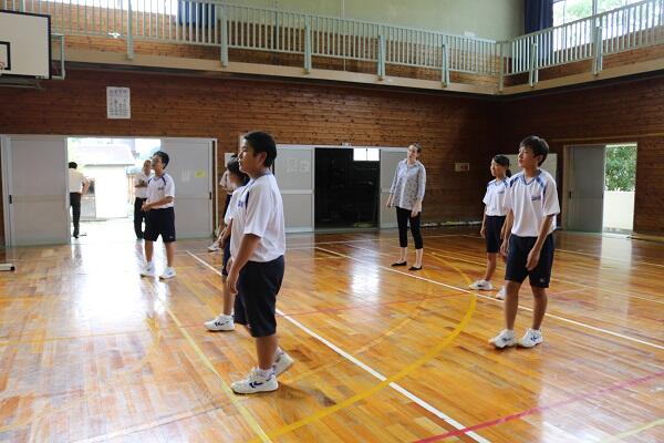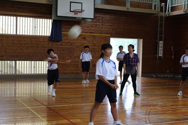 ムーチンさんは1年で、ケリーさんは2年で給食を食べました。昼は全校レクレーションで楽しみました。