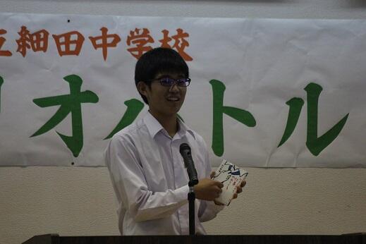 英語暗唱弁論大会の様子です。暗唱の部は永吉さんが出場しました。