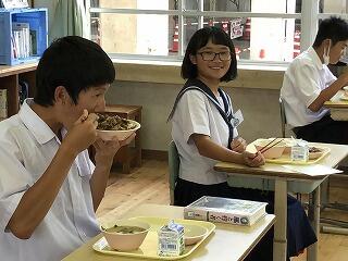 さらに、県内種雄牛もしくは家畜改良のために指定された種雄牛を親にもつ牛ということでした。栄養・おいしさ満点の牛丼に生徒たちは大満足でした。