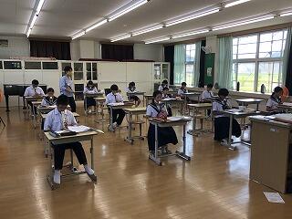 昨日、中体連大会に出場する3年生に校長室で話を聞きました。(密を避けて男女別です)