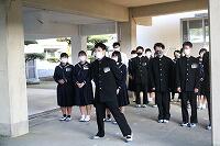 今日の朝自習の直前、突然3年生が2年生から渡り廊下に呼び出されました。何をするのかと思えば、明日からの県立高校一般入試に向けてのエールを1年生とともに送りました。突然のサプライズに3年生も嬉しそうでした。