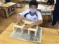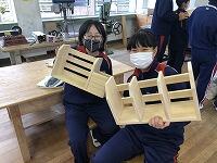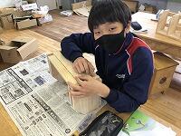 1年生は、木工作品づくりの最後の授業でした。本立てなど自分で選んだものを作りました。紙やすりで大事そうに磨いていました。