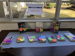 本校の図書室前にはいつも本とその紹介文とが一緒に展示されています。司書の先生が丁寧に分かりやすく紹介してくださるので、生徒たちにも好評です。