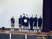 先週の金曜日は、3年生送別行事と校内球技大会がありました。送別行事では、1・2年生は3年生に向けて、3年生は下級生に向けてのメッセージを歌や劇、ダンスなどで表現しました。また、その後の球技大会では、バレーボールを行い優勝チームは教員チームと試合をしました。生徒チームは先生チームにこてんぱんにやっつけられました。