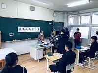 本日、日南更正保護女性会の川口氏と谷口氏が来校され、3年生に手作りの押し花しおりをプレゼントしてくださいました。また、更正保護女性会の活動についてもお話をされ、生徒たちは真剣に聞いていました。立派な贈り物をありがとうございました。