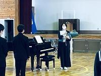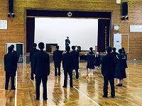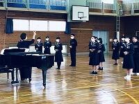 今日、4校時に卒業式で流す全校合唱の録画を行いました。当日は感染症対策のため合唱はできないので、体育館で前後の距離を十分に取って歌いました。その後、本校での授業が今日で最後となった音楽の上米良先生のお別れ会をしました。4年間も細田中学校で音楽の指導をしてくださった先生にみな感謝の気持ちで一杯でした。本当にありがとうございました。