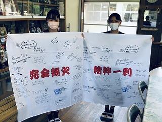学習・文化委員会の提案で今月に行われる中総体に向けて、全校生徒と職員で応援メッセージを書きました。それぞれ男女ソフトテニス部に向けて時間を見つけては一人一人書いていました。中総体激励式の日に贈呈するようです。