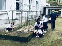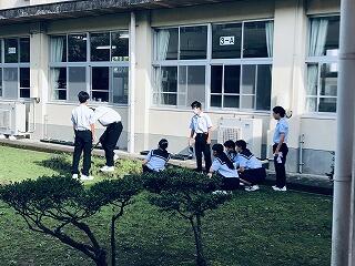 雨天が続いていましたが、今日は久しぶりに良い天気です。生徒たちは、玄関前の整地や花壇整備とボランティア活動に勤しんでいました。もうすぐ学級花壇ができあがるかな。