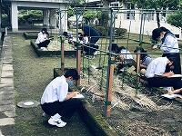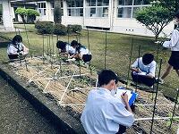 今日、2年生の技術の時間は植物育成でした。教頭先生から習って、ミニトマト、ピーマン、ナスなどを栽培しています。雨続きで生育が心配ですが、立派に育ってくれると良いです。