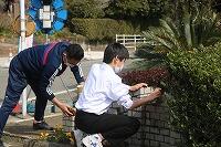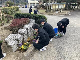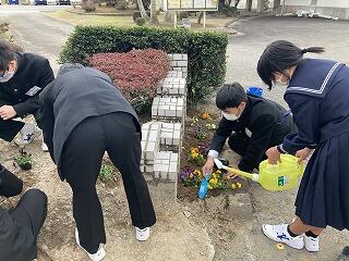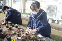 学校に花があるとやはり気が安らぐものです。環境整備員の皆さんや教頭先生が花を育ててくださるおかげで、花がいっぱいの学校です。校門前は生徒が植えてくれました。