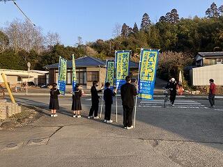 通りゆく車に向かってマスク越しに、「おはようございます」と元気よくあいさつをしていました。天気と同様清々しい光景です。