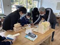 技術の時間をちょっと覗きました。教頭先生が丁寧に木工の授業をされていました。早く終わった生徒たちは、サポート役で頑張っていました。上手にできていました。