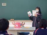 学校図書司書の多田先生が3年生にブックトーク。クリスマスに関係する本、大人気アニメワンピースに影響を与えたかもしれない本の紹介。真っ赤なお鼻の~♪クリスマスソングのプレゼント。1年生が使用したチョッパーの帽子も登場。